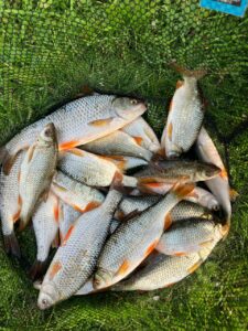 The silver fishing on the lake has been fantastic over the last few months and our vice chairman Geoff has had some nice Roach but on Tues 30th Sept he had a red letter day on peg 19 (THE ARM CHAIR SWIM) He fished the whip and landed lots of quality Roach